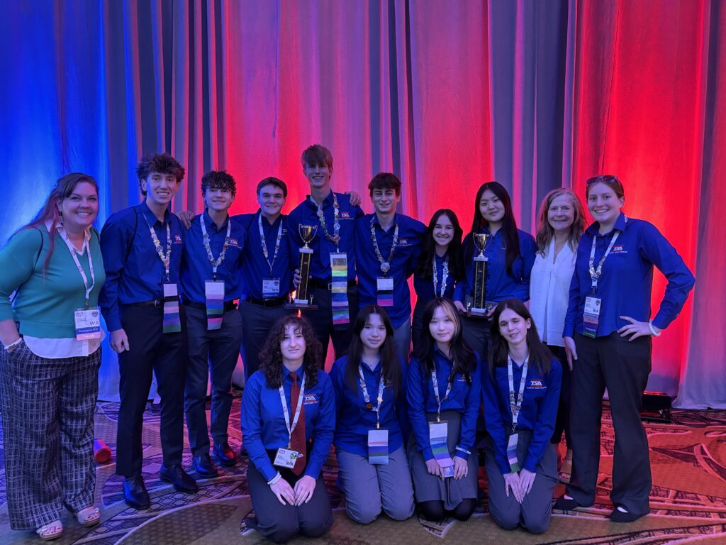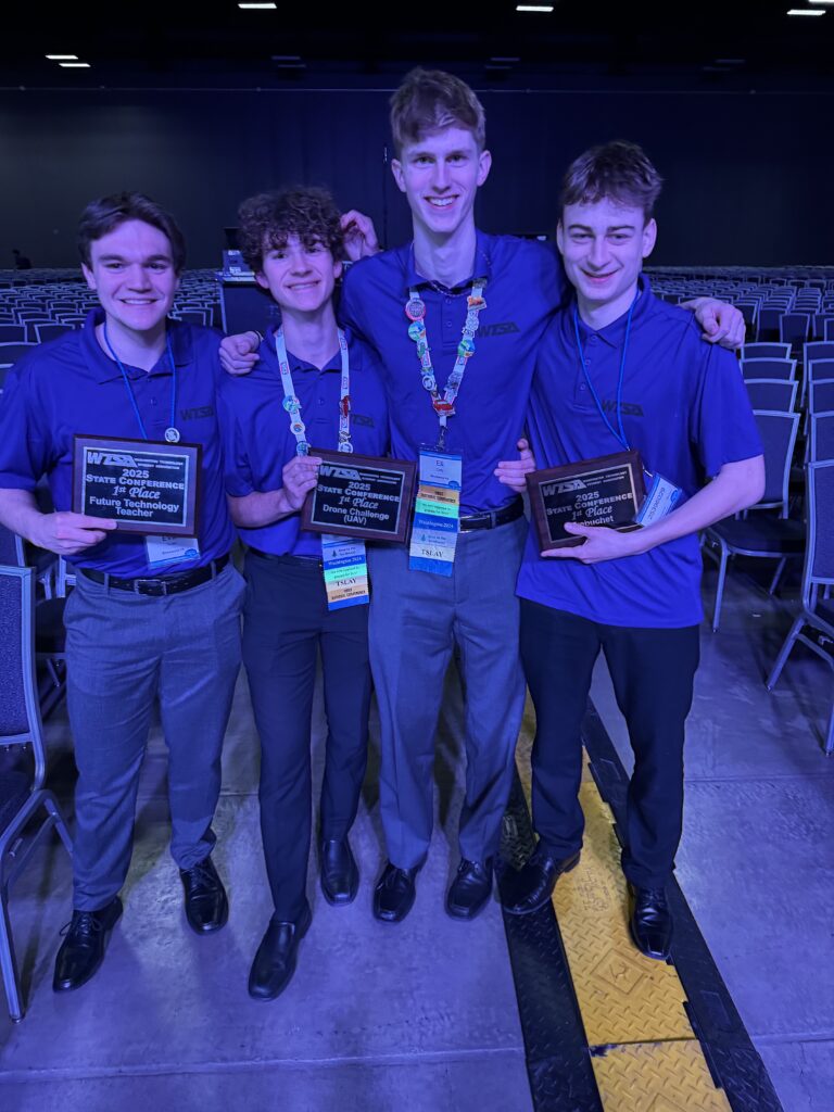 In 2025 we had 5 first place finishers at State for: Children’s Stories, Drones, Photographic Technology, Future Tech Teacher and Children’s Stories. We also had a team place 2nd in Forensics, and two teams place 3rd, in Board Game Design, and Concept Art. At Nationals all of our teams made it to semi-finals, and our Drones team and our Children’s Stories team both placed first and took home National trophies for those events! Our structures team also came in 4th at Nationals.